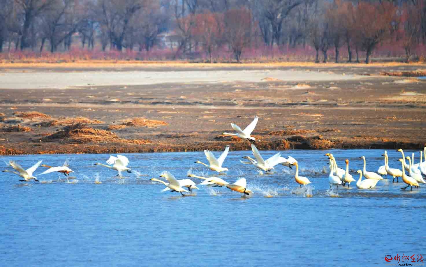 滹沱河定襄段迎來(lái)天鵝回歸