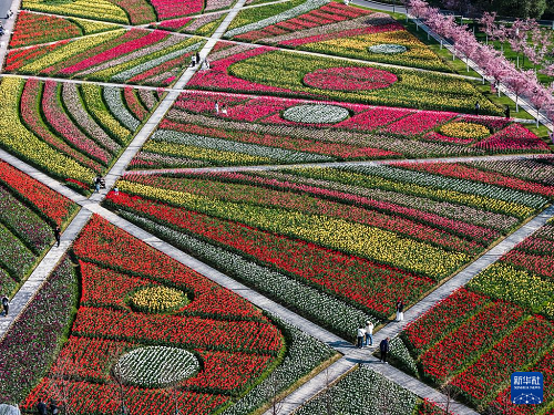 空中俯瞰花田美地景區(qū)(3月10日攝,無人機照片)。(新華社記者 徐昱 攝)