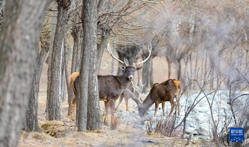 這是3月15日在西藏山南市乃東區(qū)結(jié)巴村拍攝的白唇鹿。(新華社記者 晉美多吉 攝)