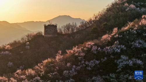 近日,隨著氣溫回暖,河北省唐山市遷西縣的長城周邊山花爛漫,美如畫卷。