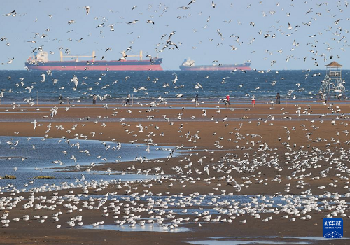 這是4月7日在河北省秦皇島市北戴河區(qū)沿海地區(qū)拍攝的海鷗。(新華社記者 楊世堯 攝)