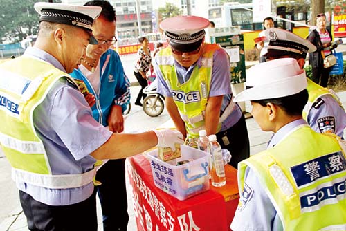 考生服務臺 本報訊(記者王國棟)我市2016年高中階段教育學校招生統(tǒng)一考試于6月20、21、22日如期進行。我市公安交警為了切實做好中考期間全市道路交通安全保障工作,為考生營造優(yōu)良交通環(huán)境,提供優(yōu)質(zhì)高效服務,提前做好預案,部署警力,加強路面管控,在各考點的主要路段實施臨時交通管制,提高道路通行率,為廣大考生安全赴考創(chuàng)造良好的道路交通環(huán)境。 今年全市共設43個考點、1093個考場,有32649名考生,其中,忻府區(qū)有9個考點、279個考場、8346名考生。市公安局交警支隊統(tǒng)籌考慮,及時了解道路通行情況,掌握考點周邊道路及考生求助情況,隨時發(fā)布指令,調(diào)度民警就近接處警,指揮管區(qū)大隊就近執(zhí)勤民警對相關(guān)路段進行管控。要求考點值勤民警在中考期間必須提前到崗,分流考點路口車輛,確保接送考生、監(jiān)考老師車輛快速通行,為考生提供一個暢通有序的交通環(huán)境。 考試期間,市公安局交警支隊在各考點設置了便民服務點,備好遮陽傘、雨傘、保溫水桶、礦泉水和考試專用的鋼筆、橡皮。便民服務臺還放置一個小藥箱,里面?zhèn)溆星鍥鲇?、防暑藥、藿香正氣水、感冒藥、腹瀉藥、速效救心丸、降壓藥等應急藥品,以防考生及家長急用。 為確保高峰期間接送考生和監(jiān)考人員車輛的安全通行,市公安局交警支隊在城區(qū)和平街、長征街、七一路、慕山路設立“中考綠色通道”,從機關(guān)抽調(diào)警力,提前介入,主動與各考點、學校取得聯(lián)系,提前掌握本轄區(qū)各學校參加考試的考生集體乘車情況及車輛行駛路線,并抽調(diào)專門警力對相關(guān)車輛及行駛路線進行重點管控,做好中考綠色通道的交通指揮疏導工作,確保接送考生車輛途經(jīng)路段道路交通安全暢通。