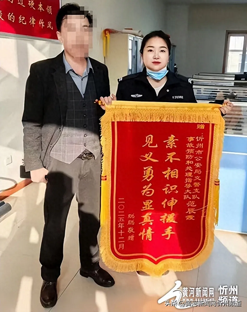 12月16日晚,一名市民因飲酒過量倒在雪夜路旁,幸得忻州市公安局交管支隊(duì)事故預(yù)防和處理指導(dǎo)大隊(duì)輔警范辰霞及時(shí)發(fā)現(xiàn)并救助,最終化險(xiǎn)為夷。12月22日,獲救市民專程送來(lái)錦旗,向危難時(shí)刻伸出援手的交警同志表達(dá)謝意。