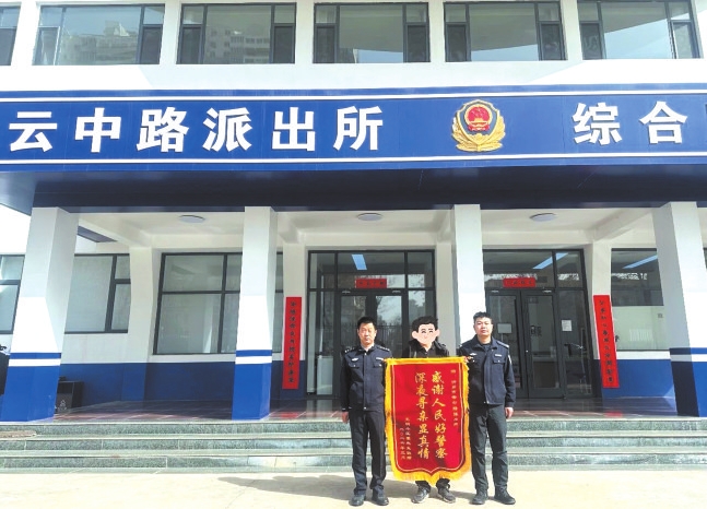 經(jīng)過4小時不懈搜尋,次日凌晨1時許,民輔警在城區(qū)梧桐苑小區(qū)附近人行道上發(fā)現(xiàn)獨自徘徊的老人,確認老人身體無礙后,將其安全護送回家。看到安然無恙的老人,家屬激動不已,緊緊握住民輔警的手連連道謝。不久后,他們特意將一面印有“感謝人民好警察 深夜尋親顯真情”的錦旗送到云中路派出所,再次向深夜不辭辛勞、全力尋人的民輔警表達誠摯謝意。