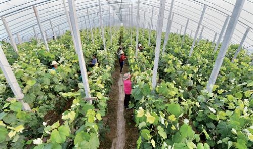 前幾年,定襄的設(shè)施農(nóng)業(yè)種植分散、設(shè)施條件差、收益低。受祿鄉(xiāng)在發(fā)展設(shè)施農(nóng)業(yè)的過程中總結(jié)出了“支部引領(lǐng),村委支持,黨員帶頭,群眾跟進,吸納貧困戶”的經(jīng)驗并在全縣起到示范作用。建規(guī)模園區(qū)土地流轉(zhuǎn)首當(dāng)其沖,受祿鄉(xiāng)在流轉(zhuǎn)土地的時候,采取“農(nóng)民報名,統(tǒng)一規(guī)劃,簽訂合同”的辦法。流轉(zhuǎn)集中的土地,各村負責(zé)“三通一平”。定襄的設(shè)施農(nóng)業(yè),已經(jīng)從以前的改良式塑料大棚,發(fā)展到現(xiàn)在廣泛推廣的下凹式日光溫室和全鋼架春秋大棚,棚內(nèi)作物也實現(xiàn)了由普通蔬果到甜瓜、草莓、西蘭花等“新特優(yōu)”產(chǎn)品的轉(zhuǎn)型。