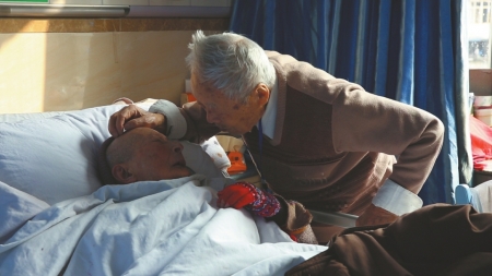 “我20歲了!”鐘婆婆的回答讓護(hù)工有些哭笑不得,也許她還記得,20歲是她最好的年紀(jì),那一年她嫁給了他。時(shí)光涌動(dòng),穿過(guò)她的記憶,或許她的年華定格在了20歲,只有身邊的他,記得他們已經(jīng)相伴了70年。(記者 田之路 吳楓)