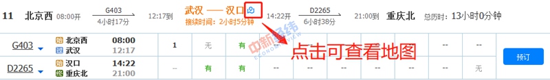 在信息篩選完畢后,大家可以從黃色字體標(biāo)注的車(chē)站和時(shí)間信息,得知是否在同一車(chē)站換乘以及接續(xù)時(shí)間。需要注意的是,不同的換乘地點(diǎn)一般接續(xù)時(shí)間不一樣,大家應(yīng)充分考慮各種影響換乘的因素,預(yù)留充分的時(shí)間搭乘下一趟列車(chē)。