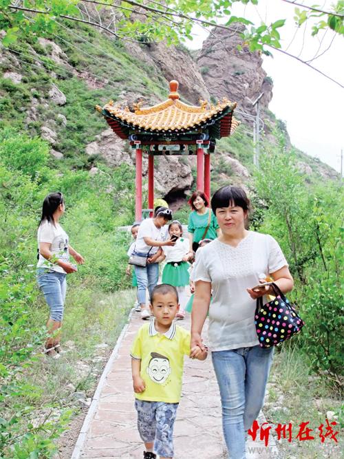 6月1日,定襄縣七巖山附近南王村幼兒園的孩子們在表演完節(jié)目后,與父母在猿頭山景點(diǎn)涼亭前游覽、拍照。這些孩子的父母大多外出打工,平時與孩子聚少離多,和父母一起親近大自然成了孩子們今年“六一”最大的快樂。