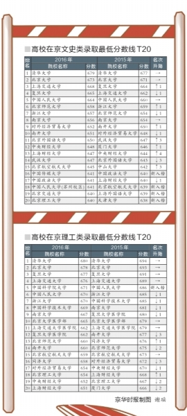 比較去年和今年各高校在京錄取最低分數線可以發(fā)現,文理兩科“十大最難考”高校基本確定。
