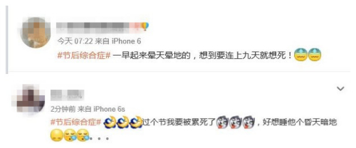 十一假期結(jié)束 四大建議教你遠(yuǎn)離節(jié)后綜合癥 節(jié)后綜合癥是人們在假期之后出現(xiàn)的各種生理或心理表現(xiàn),例如在節(jié)后的幾天里感覺厭倦,提不起精神,上班和學(xué)習(xí)效率低,甚至有不明原因的惡心、神經(jīng)衰弱等。為避免出現(xiàn)這種情況,中新網(wǎng)梳理了一些飲食、休息等方面的建議,讓你在節(jié)后第一天精神滿滿。 調(diào)整作息 早睡早起 自2015年2月至今,新浪微博“#節(jié)后綜合癥#”的話題主頁持續(xù)有新帖發(fā)布,總閱讀量超過1000萬。節(jié)后第一天尚未到來,已經(jīng)有網(wǎng)友發(fā)帖抱怨“一早起來暈天暈地的”“好想睡他個(gè)昏天暗地”。 相對于上班、上學(xué)來說,很多人假期時(shí)的作息非常不規(guī)律。有人徹夜上網(wǎng)或打牌,有人奔波在旅途,生物鐘被打亂。節(jié)后又很難快速適應(yīng),晚上睡不著,白天睡不醒。 補(bǔ)救措施之一是調(diào)整作息,盡量早睡早起,有條件的話可以適當(dāng)午休。如果晚上難以入睡,洗個(gè)熱水澡會有助于睡眠。