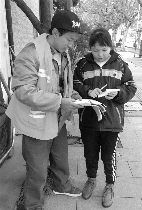 曉華的“書(shū)房”位于嘉興市中山東路,嘉興中醫(yī)院西邊。她的父親陳富康,每天就在附近1公里長(zhǎng)的路段打掃街道,從早上5點(diǎn)干到晚上10點(diǎn)。