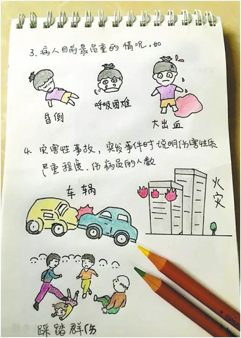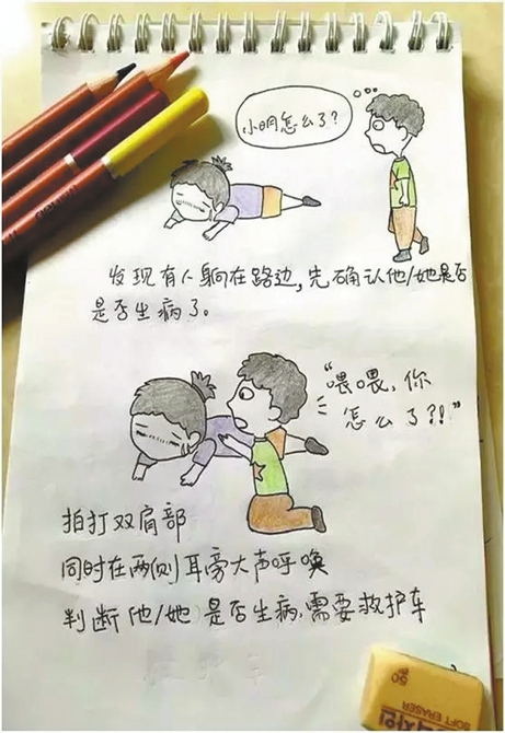 說起畫這套漫畫的原因,何瑾說,這是從實(shí)際的工作出發(fā)得來的。有不少人不清楚怎么撥打120急救電話,有的人對(duì)撥打120的相關(guān)要求并不是很了解,想象和實(shí)際上還是有差距,通過漫畫,讓更多的人了解正確撥打120急救電話的方法和步驟。(華西城市讀本記者陳伯強(qiáng) 受訪者供圖)