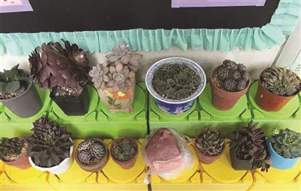 一塊豬肉夾在一堆“肉肉”植物中。 揚(yáng)子晚報(bào) 圖