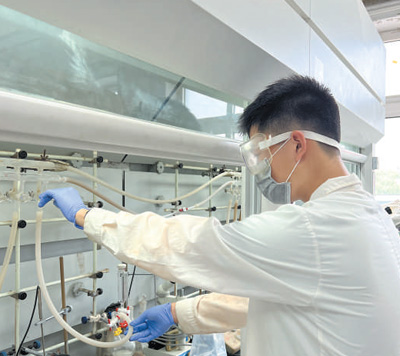 北京市第四中學學生張子鳴在北京師范大學有機化學實驗室做實驗。