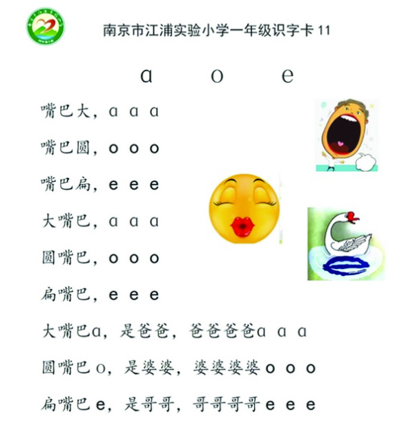 南京市江浦實(shí)驗(yàn)小學(xué)語文老師夏光清表示,單韻母發(fā)音,口形不能變。“我會(huì)要求學(xué)生發(fā)音時(shí),從頭到尾口形都是圓的。如果發(fā)‘窩’音,嘴巴先發(fā)‘w’音,一開始嘴巴是撅著的,然后變成圓的,前后是變化的。”