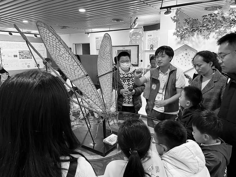 中國(guó)農(nóng)業(yè)大學(xué)昆蟲博物館講解員正為觀眾講解。
