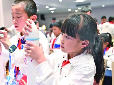 少先隊(duì)員走進(jìn)文昌航天發(fā)射場,參加制作水火箭等活動(dòng)。新華社發(fā)