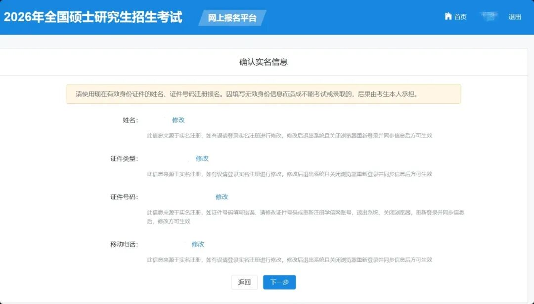 確認(rèn)實(shí)名注冊(cè)信息后,考生要按照《2026年全國碩士研究生招生工作管理規(guī)定》要求填寫正確的學(xué)歷(學(xué)籍)信息。