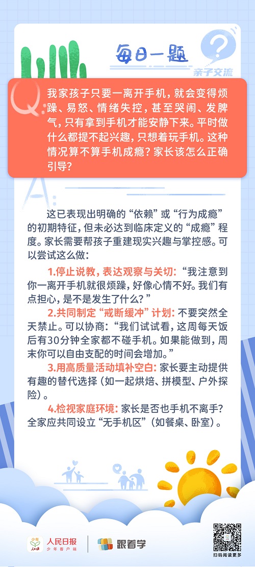 每日一題丨孩子離開手機(jī)就煩躁、易怒,這屬于手機(jī)成癮嗎?