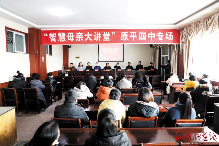 本報訊 近日,由原平市關(guān)工委、市教科局、市婦聯(lián)共同發(fā)起、組織、舉辦的全市“智慧母親大講堂”四中專場講座在該校6樓會議室舉行,來自該校城鄉(xiāng)的100余名家長聆聽了市關(guān)工委家庭教育講師團講師華莉玲、四中教師張曉鳳的專題講解。
