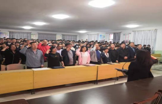 最后在白曉燕副校長的帶領(lǐng)下,高三全體老師、學(xué)生緊握右拳,重溫高考誓言:“腳踏實(shí)地刻苦專研;揮灑汗水斗志昂揚(yáng);決戰(zhàn)高考再創(chuàng)輝煌,必勝、必勝、必勝!”