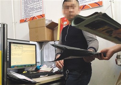 4月21日,圓通快遞太原長風(fēng)分公司。一名負責(zé)人教記者如何做空包裹,同時遞給記者一疊廣告紙,建議做空包時放入。 新京報記者 大路 攝