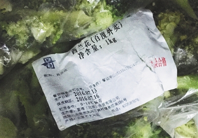 只見加熱后袋裝西蘭花標簽上的生產(chǎn)日期已被浸泡模糊。一名女店員直接用剪刀剪開兩袋,倒入盆內(nèi)清洗,有些西蘭花顏色已變黃。該店員直接將變了顏色和蔫了的挑出,扔進垃圾桶。西蘭花的外包裝保質(zhì)期顯示為7月13日至7月16日。凈含量為1kg。對于過期西蘭花為何還要用?一名女店員說:“今天用西蘭花配菜都是過期的,不用咋辦?”