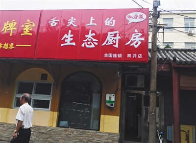 7月25日,北京朝陽區(qū)勁松一中南門西側(cè)的百度生態(tài)廚房雙井店,門口掛有標牌。