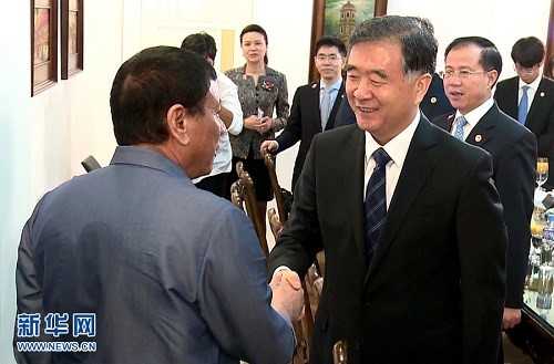 3月17日,菲律賓總統(tǒng)杜特爾特在達(dá)沃市會見在菲律賓進(jìn)行正式訪問的中國國務(wù)院副總理汪洋。