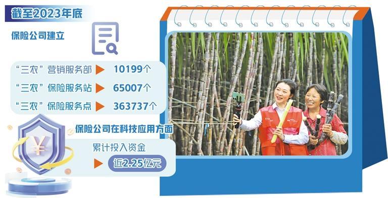 科技的運(yùn)用也有效推動(dòng)保險(xiǎn)業(yè)服務(wù)農(nóng)村。中國保險(xiǎn)行業(yè)協(xié)會(huì)發(fā)布的《保險(xiǎn)業(yè)高質(zhì)量服務(wù)鄉(xiāng)村振興藍(lán)皮書(2024)》顯示,保險(xiǎn)業(yè)有效提升了縣域和農(nóng)村機(jī)構(gòu)網(wǎng)點(diǎn)覆蓋率,截至2023年底,保險(xiǎn)公司建立“三農(nóng)”營銷服務(wù)部10199個(gè),“三農(nóng)”保險(xiǎn)服務(wù)站65007個(gè),“三農(nóng)”保險(xiǎn)服務(wù)點(diǎn)363737個(gè)。2023年,保險(xiǎn)公司在科技應(yīng)用方面累計(jì)投入資金近2.25億元,主要用于空間信息技術(shù)、AI識(shí)別、人工智能、物聯(lián)網(wǎng)等科技手段應(yīng)用,構(gòu)建農(nóng)業(yè)生產(chǎn)、風(fēng)險(xiǎn)信息數(shù)據(jù)共享平臺(tái)。