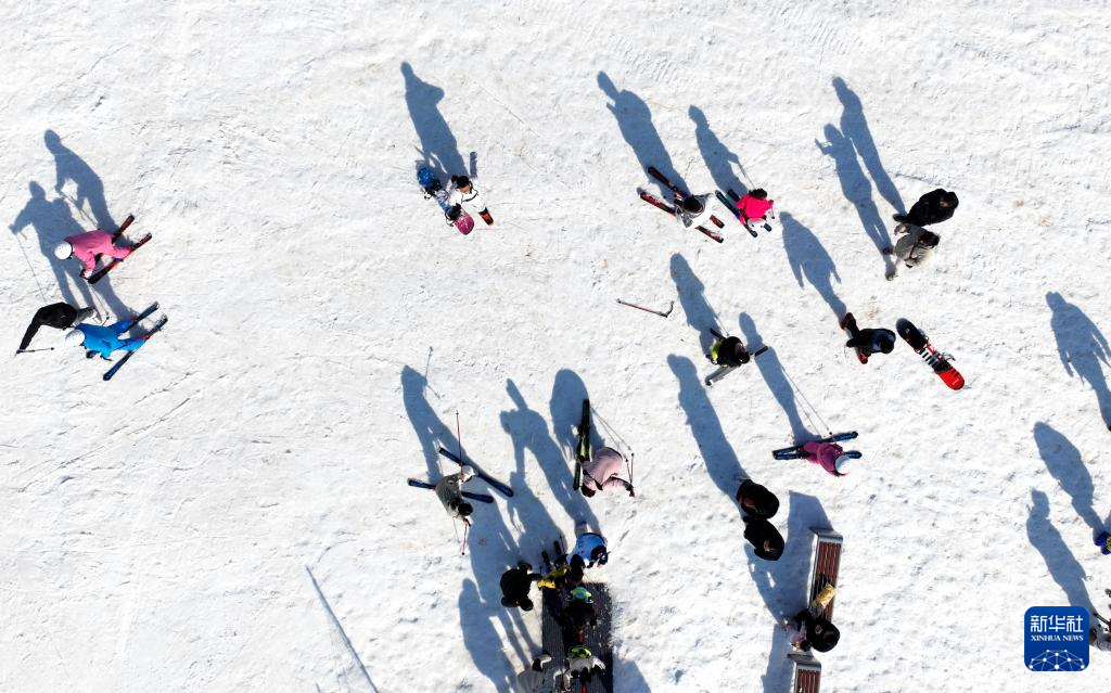 1月19日,游客在邯鄲市復(fù)興區(qū)東高河村滑雪場內(nèi)滑雪(無人機照片)。