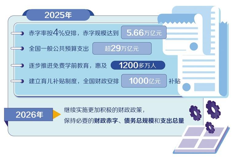 按照部署,2026年我國將會保持必要的財政赤字、債務總規(guī)模和支出總量。