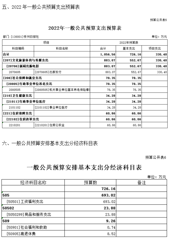 第二部分2022年度忻州日報(bào)社預(yù)算報(bào)表