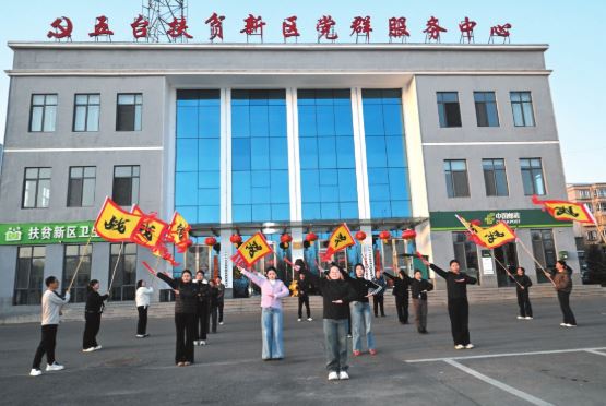 正月初八,走進(jìn)位于五臺(tái)縣東雷鄉(xiāng)的扶貧新區(qū)社區(qū),夕陽余暉灑滿這片占地26萬平方米的集中安置區(qū)。13棟六層居民樓內(nèi)年味濃郁,街道上紅燈籠高懸,家家戶戶門前張貼著紅彤彤的對(duì)聯(lián)。辦公樓前的廣場(chǎng)上鼓樂悠揚(yáng)、彩旗飄飄,由社區(qū)牽頭、居民自發(fā)參與的秧歌隊(duì)正加緊排練,準(zhǔn)備參加該縣元宵節(jié)文藝匯演。圍觀居民的歡聲笑語與參與者的歡快舞姿,勾勒出一幅溫馨熱鬧的新春畫卷。
