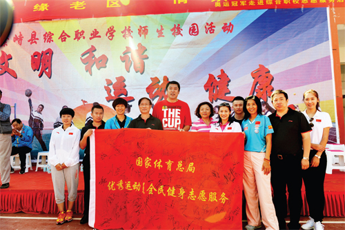 “奧運(yùn)冠軍來了!”9月7日至8日,革命老區(qū)繁峙縣迎來了一批尊貴的客人,國家體育總局局長助理李穎川率領(lǐng)孫甜甜、奚愛華、李娜、肖欽等10名體育健兒深入革命老區(qū)繁峙縣,開展了“情緣老區(qū),情系體育”奧運(yùn)冠軍走進(jìn)繁峙志愿服務(wù)活動(dòng)。他們走進(jìn)校園、深入農(nóng)村,來到繁峙中學(xué)、繁峙縣綜合職業(yè)學(xué)校、橫澗鄉(xiāng)平型關(guān)村,與學(xué)生開展體育項(xiàng)目互動(dòng),與老鄉(xiāng)零距離接觸指導(dǎo)全民健身活動(dòng),為繁峙脫貧助威,給老區(qū)發(fā)展鼓勁,所到之處無不傳遞出“奧運(yùn)精神”正能量。