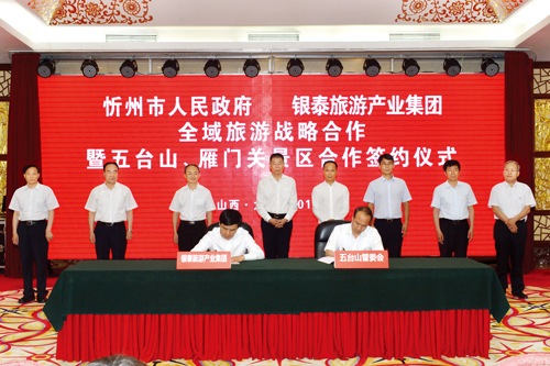 忻州市與銀泰旅游產(chǎn)業(yè)集團(tuán)全域旅游戰(zhàn)略合作暨五臺(tái)山、雁門(mén)關(guān)景區(qū)合作協(xié)議簽約儀式現(xiàn)場(chǎng)。宮愛(ài)文 攝