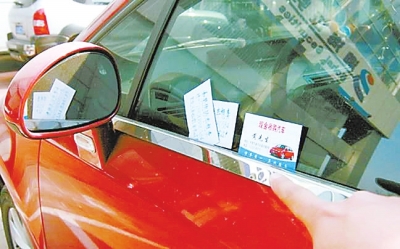 車窗上被插上各種名片式的小廣告,盡管令很多車主不勝其煩,但大家也多是取下來直接扔掉,沒太當(dāng)回事,而車主王先生卻因此花了幾百元的修車錢。