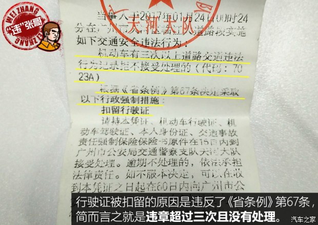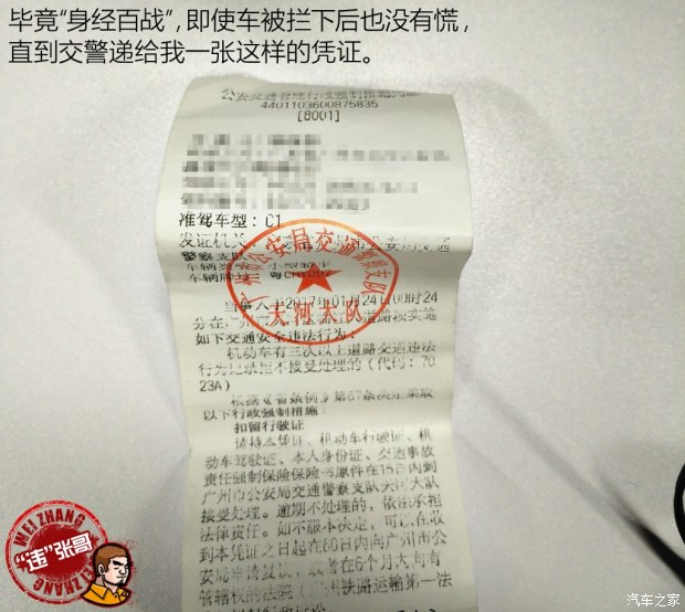 “違”張哥這個(gè)系列的選題原本都是我的同事張欣在更新,而我(廣州分站編輯陳海傭)平時(shí)很少寫用車類文章,但每次只要寫就說明我又?jǐn)偵鲜铝恕_@次比較尷尬,在春節(jié)放假前夕,因?yàn)檫`章過多被交警扣留行駛證。表面是把違章處理完就能拿回行駛證,可沒想到整個(gè)過程竟是如此一波三折,很多細(xì)節(jié)需要注意。據(jù)統(tǒng)計(jì),在今年春節(jié)期間,就有超過220萬(wàn)多條違章產(chǎn)生,不知道大家有沒有中招。如果有并且違章次數(shù)超過三次,那就要特別注意了,也希望我這次親身經(jīng)歷的分享能夠給大家一些啟發(fā)。