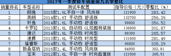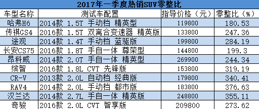 對于老百姓而言,在得知北京奔馳 GLK級配件的價格總和可以買 8輛整車時,可能也僅僅是增添了對這部分車主的“羨慕”,然而,奔馳寶馬在我國說到底本就不是平民車。那么,我們就來看看 2017年一季度賣得最好的幾個品牌車型的零整比系數(shù)如何,下面的數(shù)據(jù)對你買車真的有幫助呦!