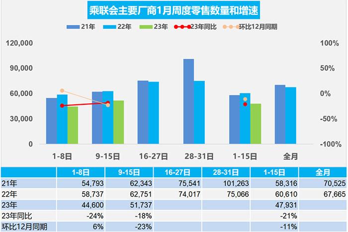 中新網1月18日電 據乘聯(lián)會公眾號18日消息,1月1-15日,乘用車市場零售71.9萬輛,同比去年下降21%,較上月同期下降11%;全國乘用車廠商批發(fā)65.9萬輛,同比去年下降20%,較上月同期下降11%。