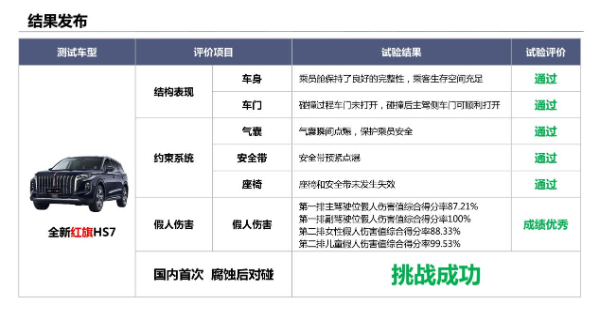 全新紅旗HS7成功通過腐蝕對碰挑戰(zhàn)并成為全國首個通過本次挑戰(zhàn)項(xiàng)目的車型,這一成績得益于一汽紅旗高品質(zhì)工藝。