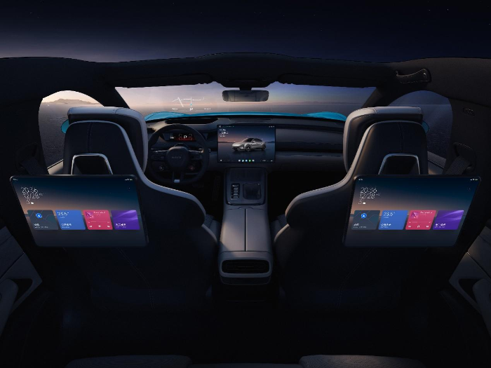 基于“以人為中心”的座艙交互架構(gòu)以及小米澎湃OS操作系統(tǒng)的加持,小米SU7實(shí)現(xiàn)從硬件到軟件的全面共享生態(tài),進(jìn)化成為移動(dòng)智能空間。該座艙搭載16.1英寸3K分辨率中控生態(tài)屏,56英寸HUD,車規(guī)級(jí)7.1英寸翻轉(zhuǎn)式儀表屏,采用2塊原生車機(jī)系統(tǒng)的小米Pad后排拓展屏,匹配驍龍8295座艙芯片,AI算力30TOPS,五屏聯(lián)動(dòng),帶來極致流暢的人車交互體驗(yàn)。