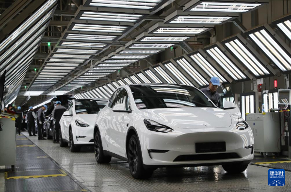 2023年12月22日,在特斯拉上海超級(jí)工廠內(nèi),工人在對(duì)出廠前的車(chē)輛進(jìn)行漆面及門(mén)窗檢測(cè)。新華社記者方喆攝