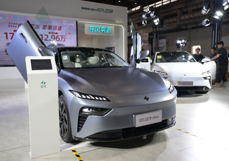 在車(chē)展上東風(fēng)奕派展臺(tái)拍攝的“eπ007”。(9月16日攝)新華社記者 蒲曉旭 攝