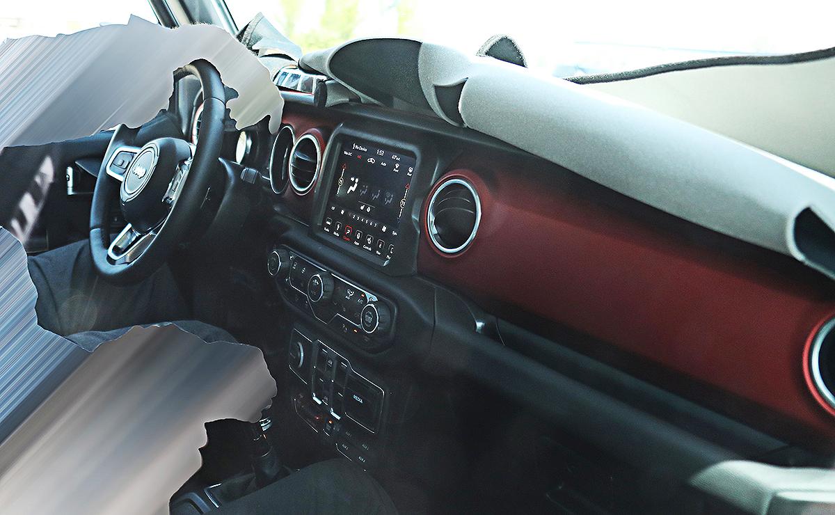 曝光的內(nèi)飾諜照是攝影師從車廂的右側(cè)拍攝的,因此不能清楚地看到該車的儀表盤。不過,中控臺和車載信息娛樂系統(tǒng)卻清晰可見。據(jù)諜照顯示,該車的車窗控制鍵仍在中控臺的中間位置,這表明該車仍保留了車門可拆卸的設計。該車的儀表組新增7英寸(約18厘米)顯示屏。
