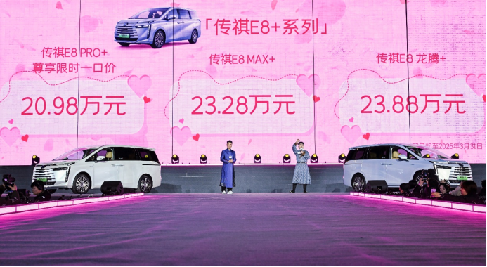 央廣網(wǎng)北京2月15日消息(記者 姜鵬)2月14日,廣汽傳祺E8+在西安舉辦E8車主之夜暨E8 PRO+上市發(fā)布會,官方指導(dǎo)價(jià)21.68萬元,3月31日前購車的用戶可以享受“尊享限時一口價(jià)”政策,價(jià)格為20.98萬元。