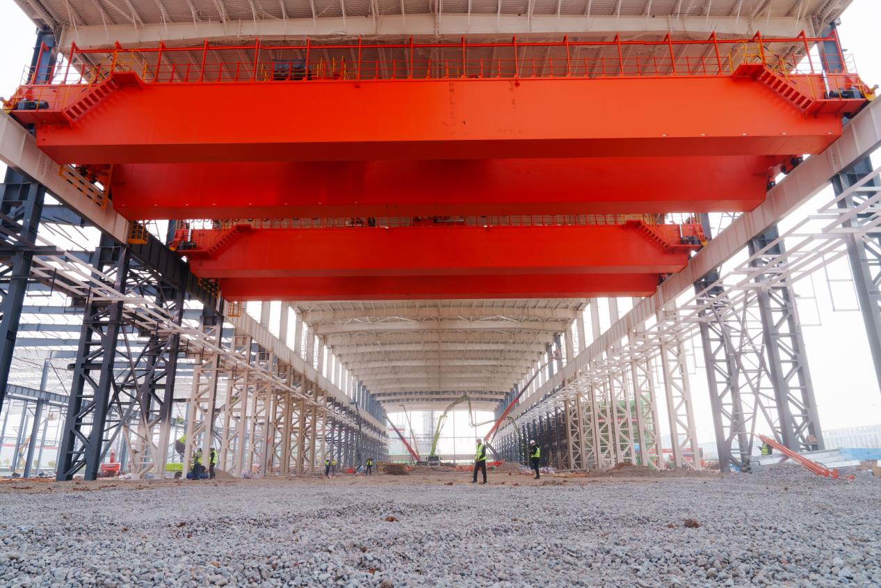 “原計劃3月底完成的壓鑄跨主體結構施工,我們提前完成?!睆S房建設項目負責人何勝元介紹。目前,壓鑄廠房主體鋼結構、檁條鋪設、天車安裝及地面碎石層已全部完工,能源動力輔房砌筑完成60%,辦公輔房澆筑完成60%。