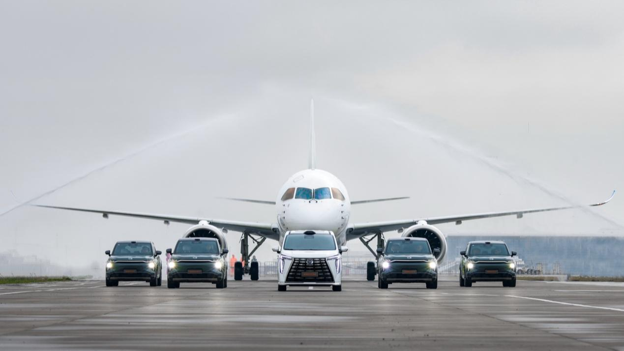 2025年3月,國產(chǎn)飛機(jī)C919執(zhí)行了一次特別的飛行任務(wù),它載著客人奔赴珠海航展中心,并在傳祺向往S7、M8領(lǐng)航下,穿過象征民航界最高禮儀的“水門禮”,這架飛機(jī)還有了一個響亮的名字——“傳祺向往號”。