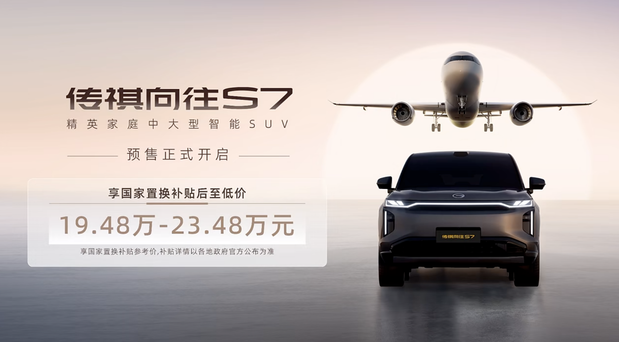 本次發(fā)布會跟C919同臺登場的傳祺向往S7,作為傳祺首款高階智駕車型正式開啟預(yù)售,預(yù)售價(jià)格(國補(bǔ)后)為19.48萬元-23.48萬元。作為尖兵,傳祺向往S7已經(jīng)亮劍,也意味著傳祺的向上之路正式開啟。