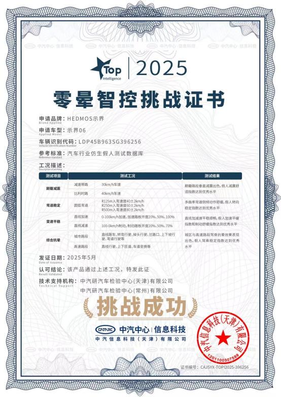 近期,在行業(yè)首次的暈動(dòng)仿生假人零暈智控挑戰(zhàn)中,示界06展現(xiàn)了優(yōu)異的駕控表現(xiàn)。中國汽車研究中心有限公司高級(jí)工程師趙博文在發(fā)布會(huì)現(xiàn)場(chǎng)公布測(cè)試數(shù)據(jù)時(shí)指出:“通過精準(zhǔn)的電機(jī)扭矩動(dòng)態(tài)分配、法系底盤調(diào)?;?,以及搭載的‘零暈智控’技術(shù)體系,示界06在六維駕控測(cè)試中表現(xiàn)出行業(yè)優(yōu)秀水平。”測(cè)試結(jié)果顯示,示界06完美實(shí)現(xiàn)了“6不”卓越體驗(yàn):簸路不顛、彎道不飄、加速不竄、減速不抖、駕乘不暈、長途不累,為行業(yè)樹立了駕乘舒適新標(biāo)桿。
